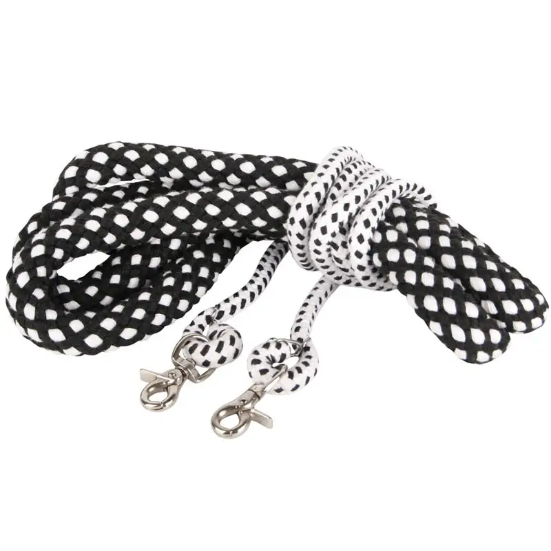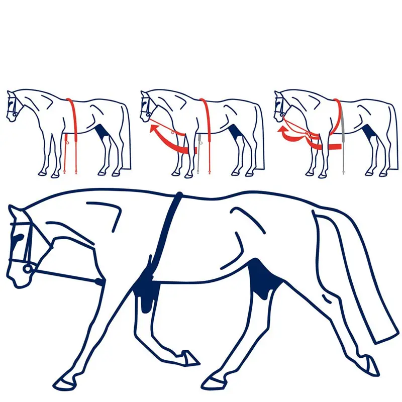 Aide à la longe de la marque Harry's Horse en coton doux avec du polypropylène solide. L'aide à la fente est très appropriée comme aide à l'entraînement pendant la fente. L'aide à la fente assure que le cheval apprend à étirer la ligne du dessus et cède également doucement. L'aide à la fente est amplement réglable en taille.