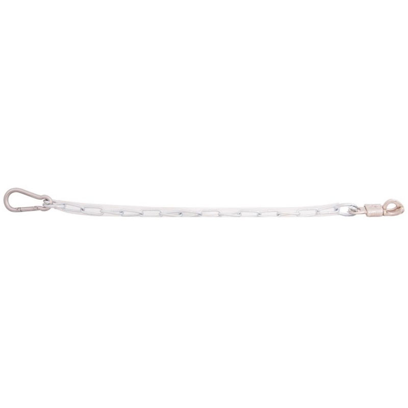 Chaîne recouverte de plastique avec crochet anti-panique et mousqueton à l'extrémité. La chaîne convient pour attacher le cheval dans la remorque ou, par exemple, dans la zone de pansage.
