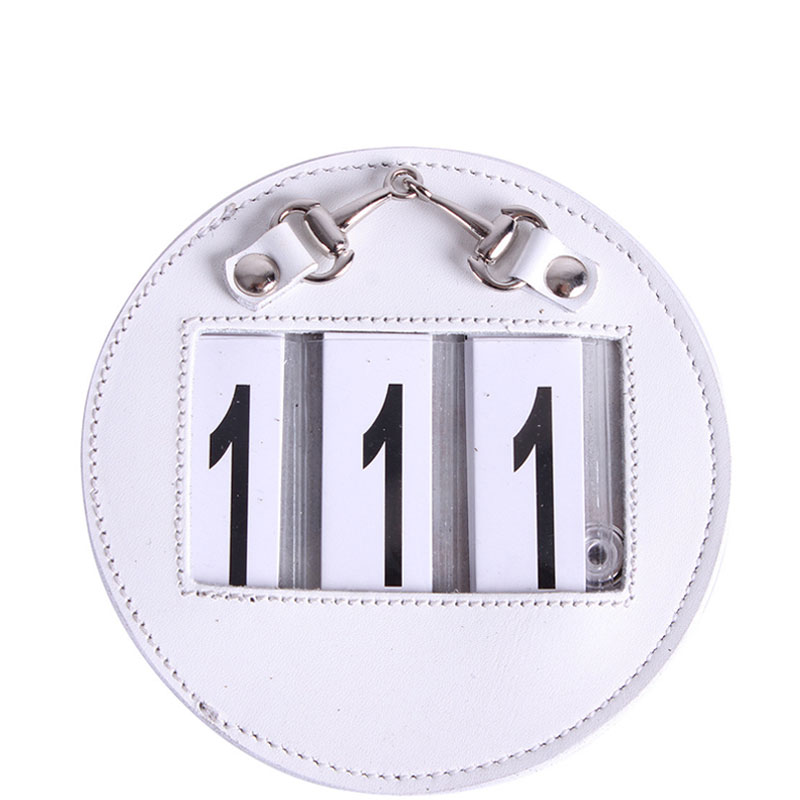 Numéro QHP Start Ricki Blanc/Argent en cuir en combinaison avec un mors élégant sur le dessus. Le numéro de départ est facile à attacher à la bride ou au tapis de selle avec des épingles de sûreté ou du velcro. Le porte-numéro est livré complet avec des numéros.